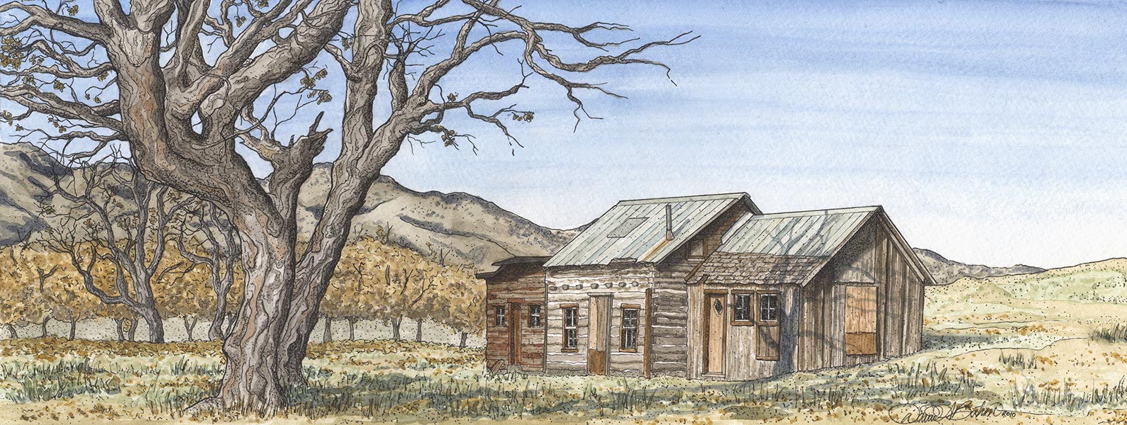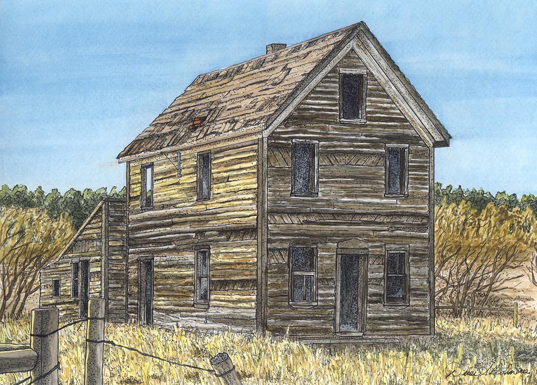 2012, ink & watercolor, 11” x 8” - sold. This house was built in the 1870s and is located about 16 miles south of Franktown, Colorado along Hwy. 83.