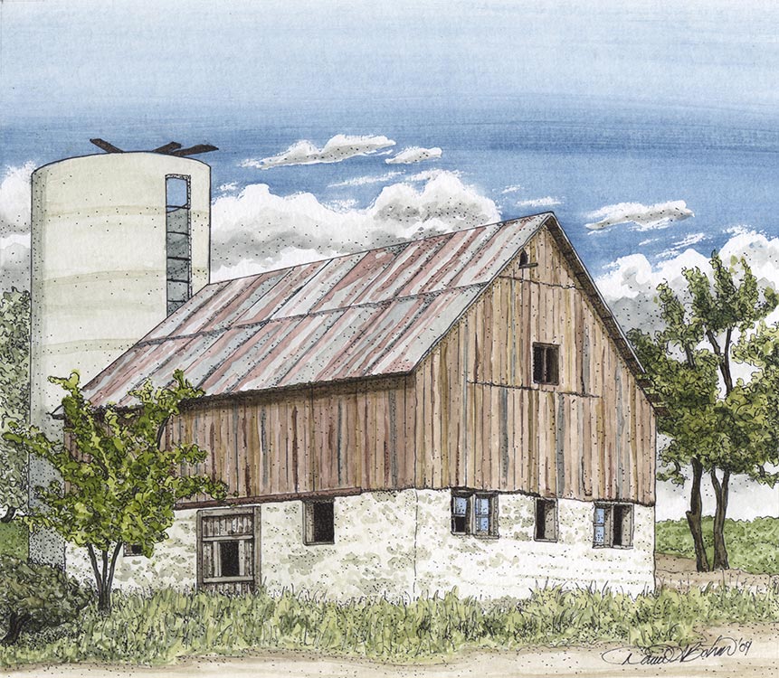 2010, ink & watercolor, 14" x 10" - sold. A commissioned piece for a friend. This barn is located near Norton, Kansas.