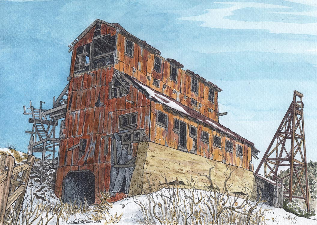 2014, ink & watercolor, 8" x 6" - sold. Located near Victor, Colorado.