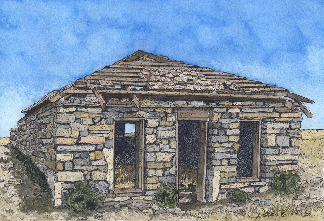 2010, ink & watercolor, 9" x 6" plus mat, glass and frame, $230. Located east of Clayton, in the northeast corner of New Mexico.
