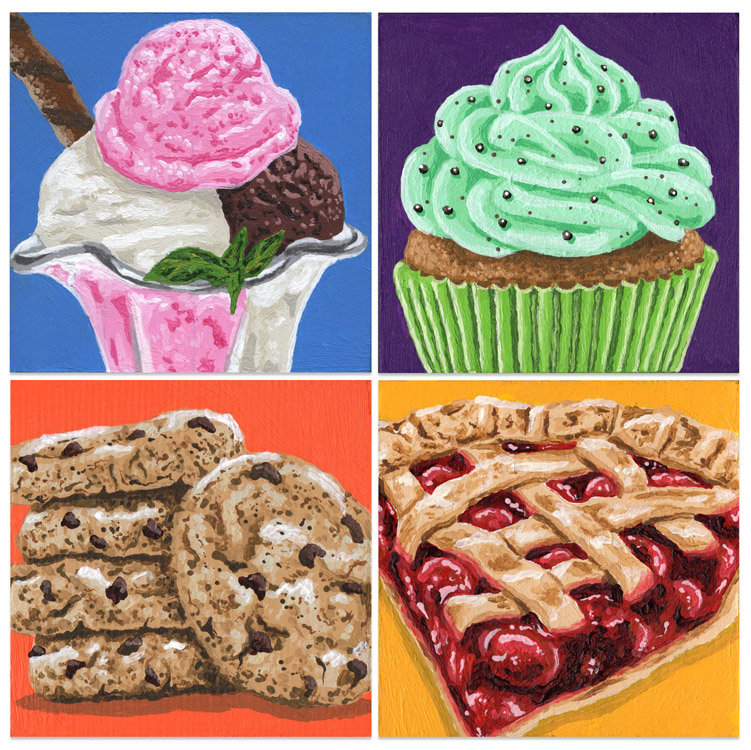 2025, acrylics on four 4" x 4" wood blocks - $45 each/$160 set